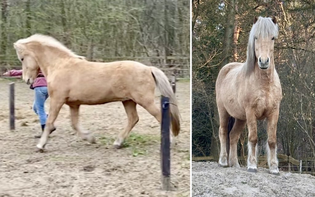 Esja is bij ons gekomen begin 2025. We zochten geen paard erbij, maar ze kwam via-via op ons pad. Ze kon geen geschikt huisje vinden, en werd ons aangeboden als interessante fokmerrie, omdat het rijden met veel spanning samen ging.